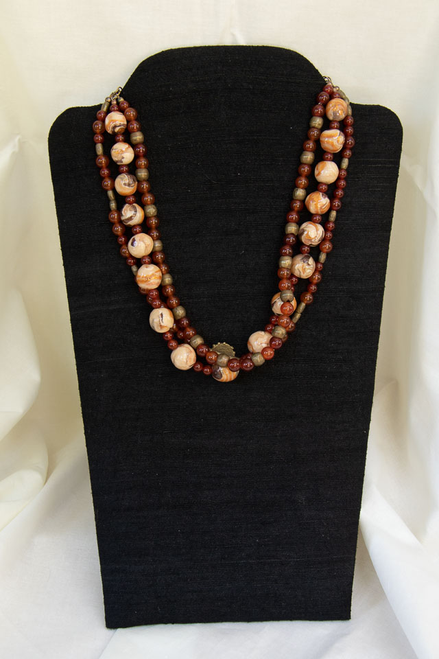 Faux Marble polymer clay, carnelian & indonesian brass. $65