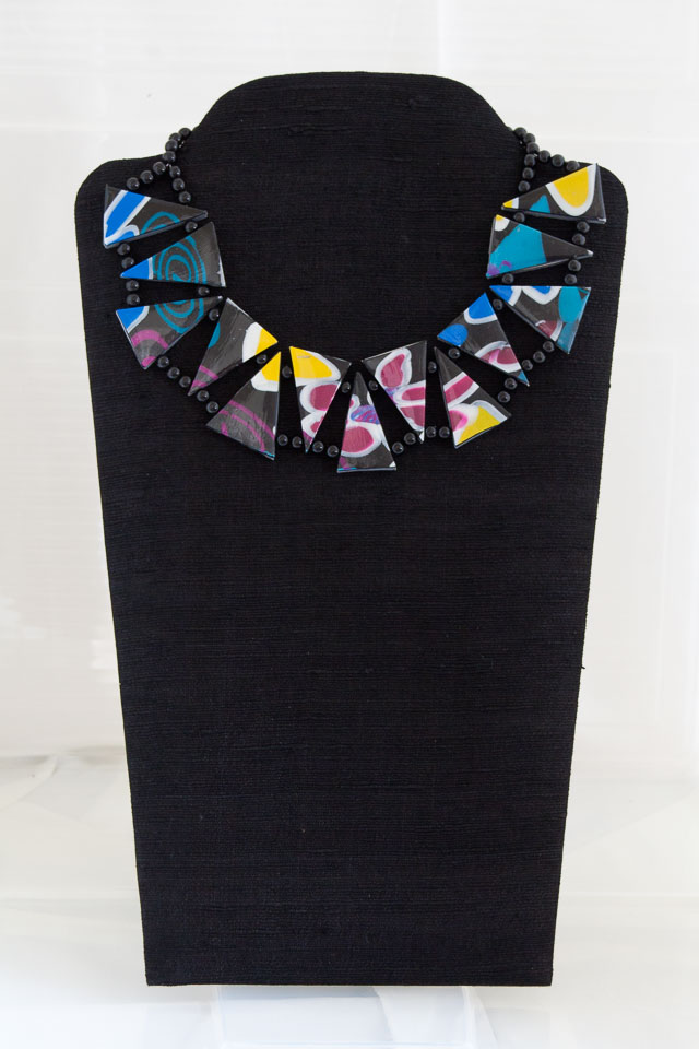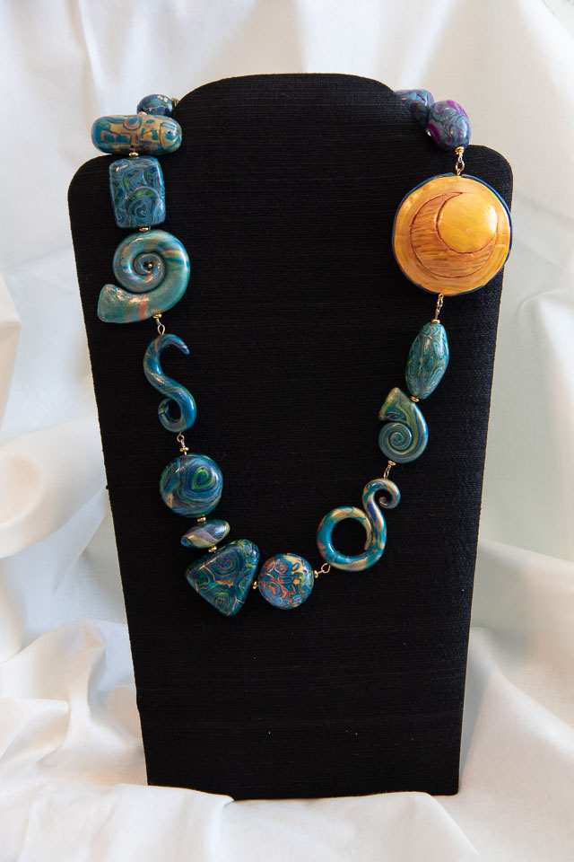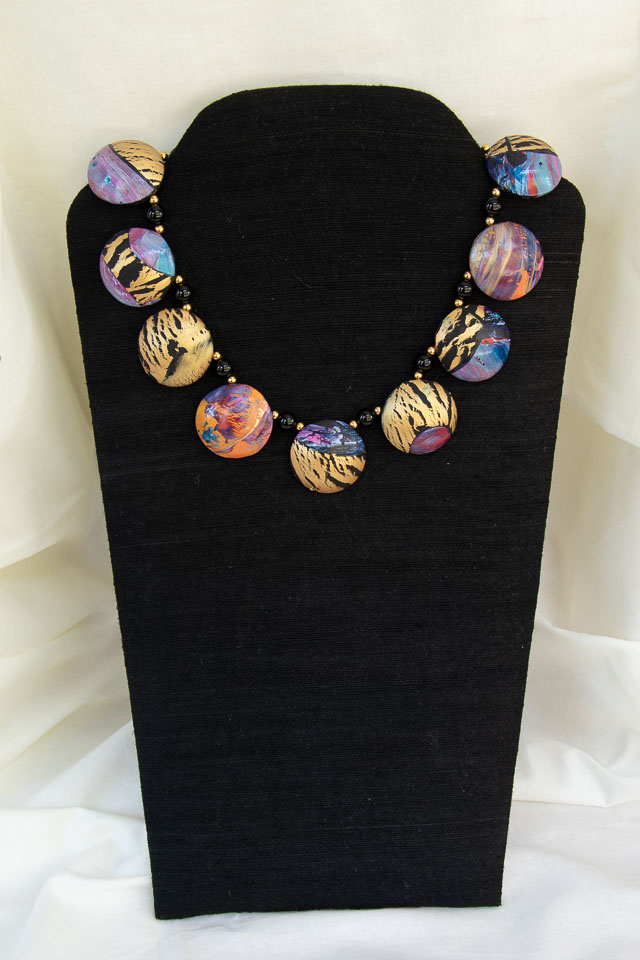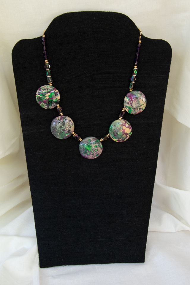 Mardi Gras #2 polymer clay & glass beads. $40