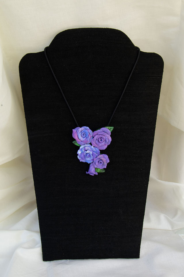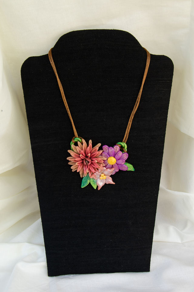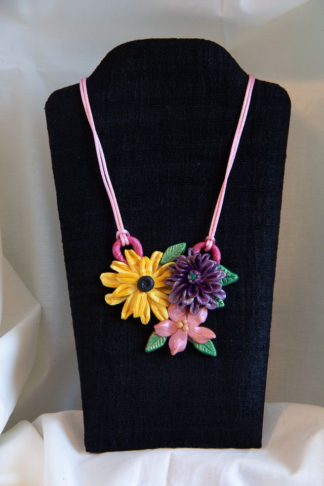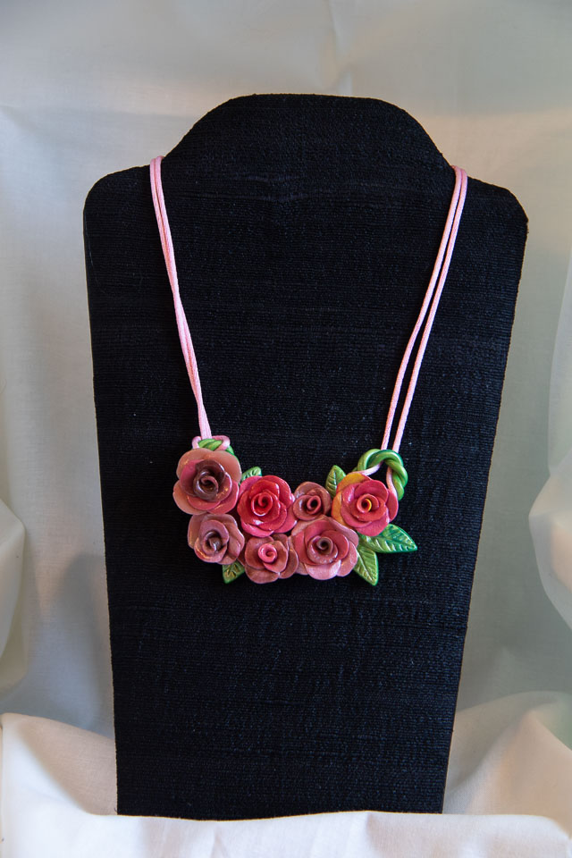 Autumn Roses polymer clay & pink cord. $40