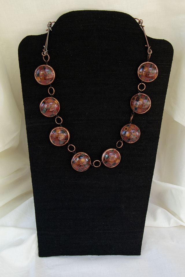 Golden Discs #1 polymer clay, acrylic paint & gold leaf. $65