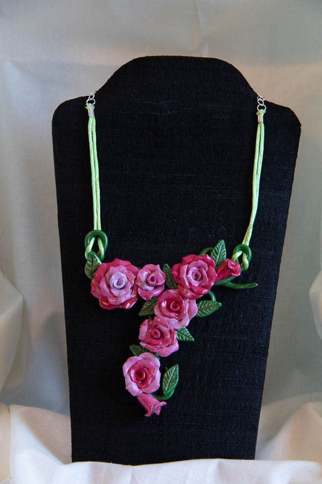 Rose Trellis polymer clay & green cord. $40