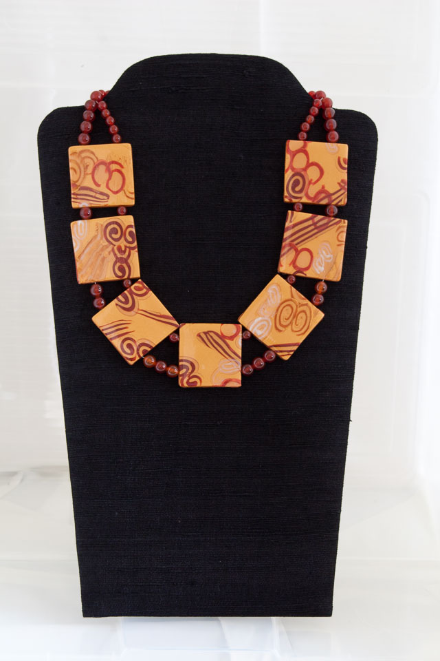 Golden Squares polymer clay & carnelian. $60