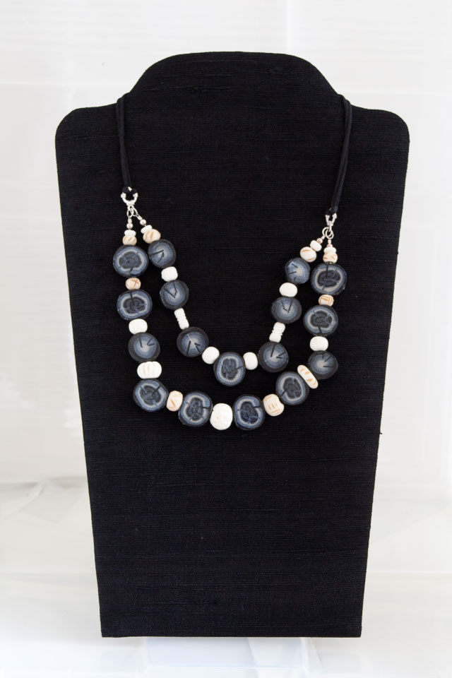 Black & Grey polymer clay & carved animal horn. $60