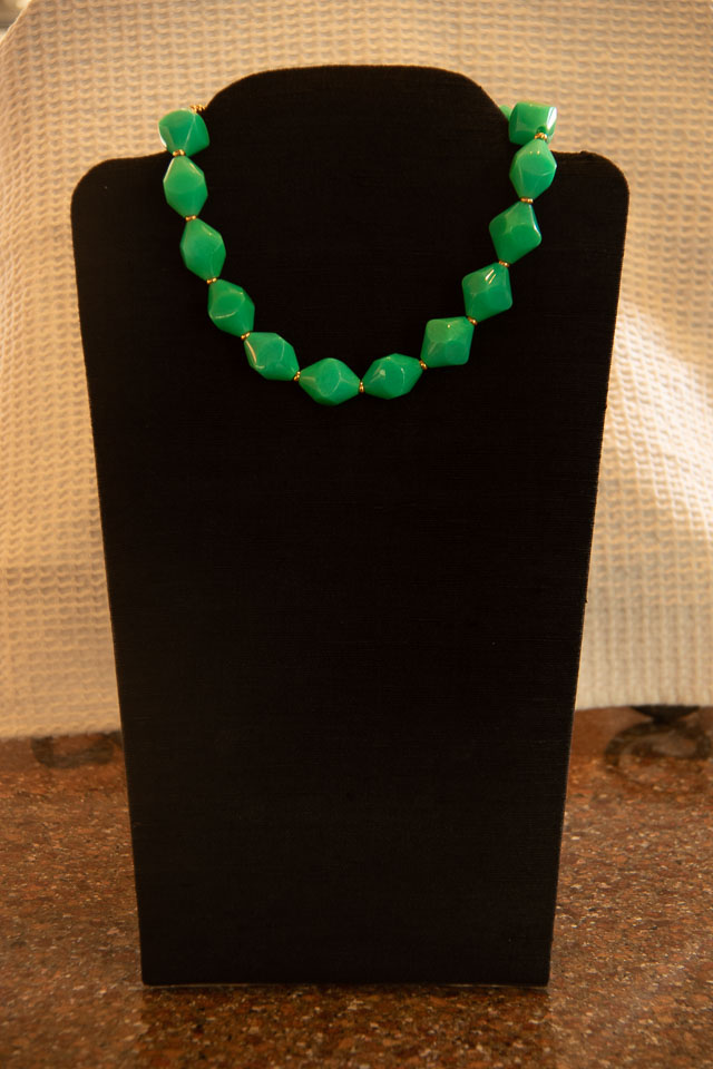 These German acrylic beads were created from the 1930's to mid 1950s in bead factories in Germany. In the late 1950s the factories were torn down and molds destroyed. These beads are very rare making these pieces collector's items.